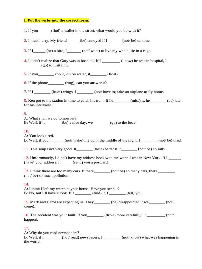 1. If you______ (find) a wallet in the street, what would you do with it?