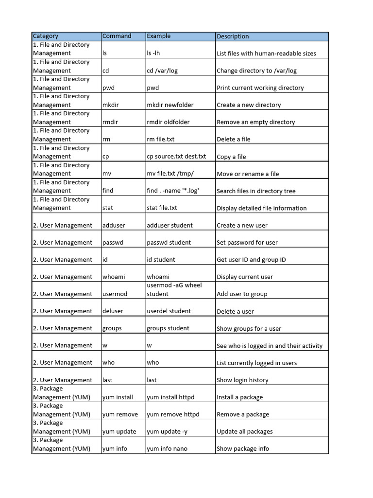 9. SELinux and Firewall firewall-cmd firewall-cmd --list-all List firewall zones and rules