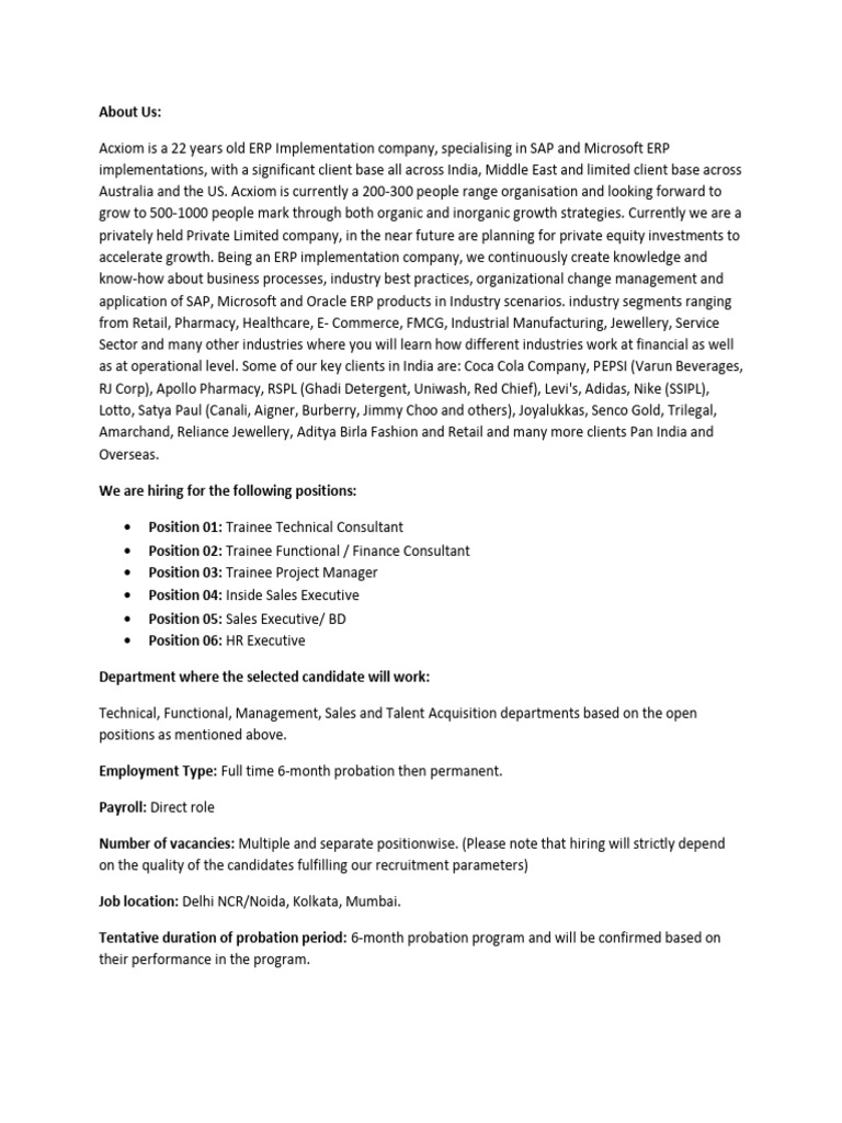 Acxiom is a 22 years old ERP Implementation company, specialising in SAP and Microsoft ERP