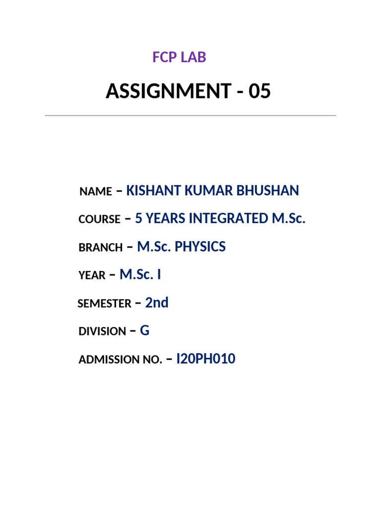 COURSE – 5 YEARS INTEGRATED M.Sc.