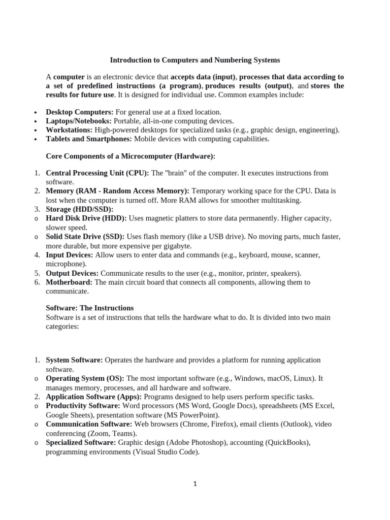 o Operating System (OS): The most important software (e.g., Windows, macOS, Linux). It