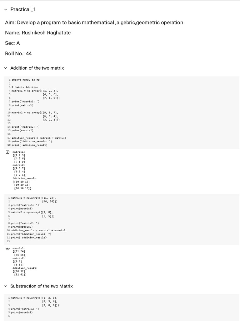Aim: Develop a program to basic mathematical ,algebric,geometric operation