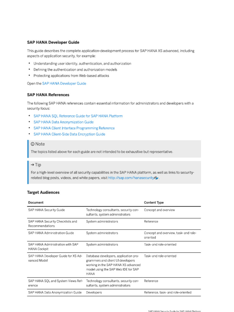 ‘SAP HANA Data Anonymization Guide Developers Reference, task and role-orientedDocument Content Type