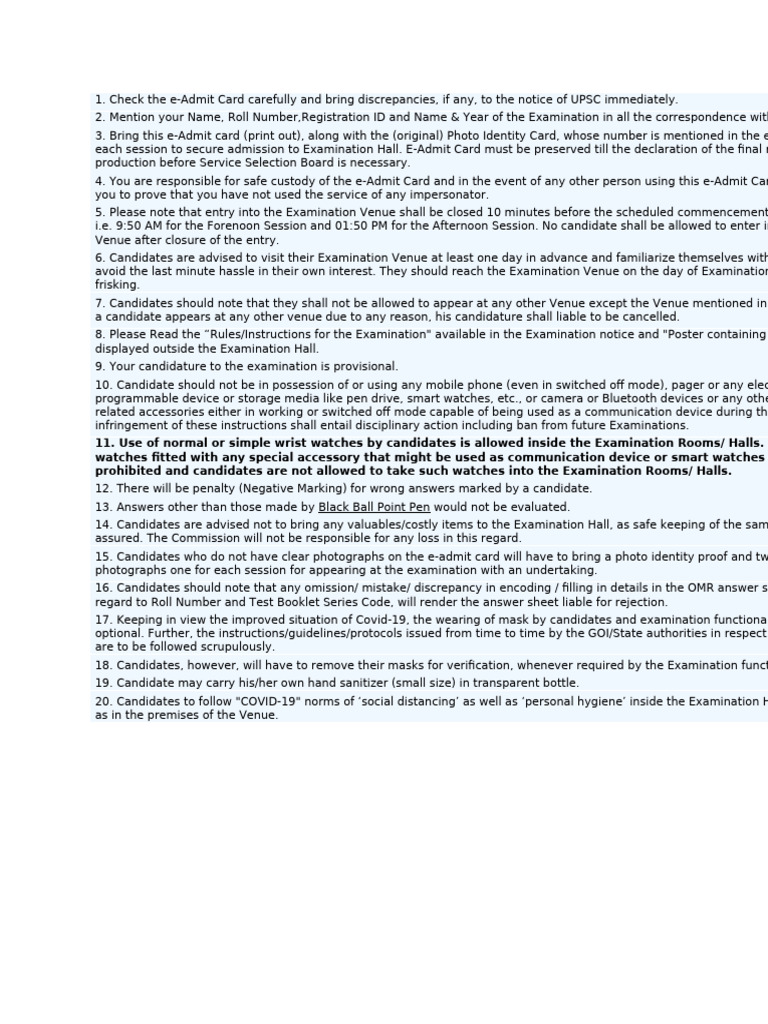 11. Use of normal or simple wrist watches by candidates is allowed inside the Examination Rooms/ Halls.