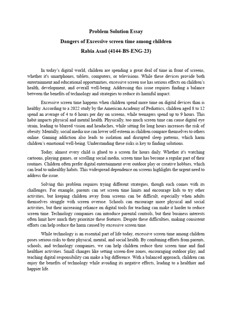 habit impacts physical and mental health. Physically, too much screen time can cause digital eye