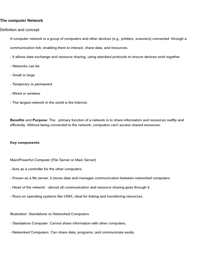 - Stand-Alone Computer: Not connected to a network; cannot share or access shared resources.