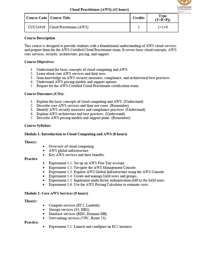 CUCS1010 Cloud Practitioner (AWS) 2 1+1+0