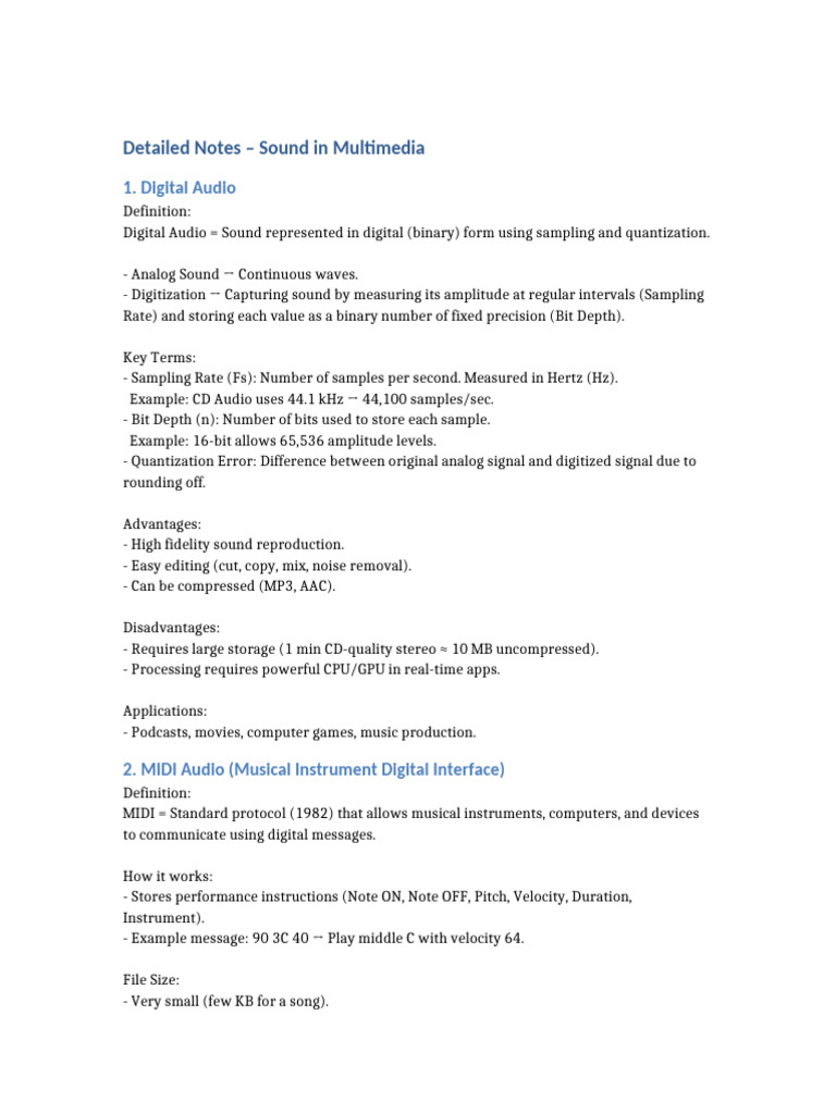 - Requires large storage (1 min CD-quality stereo ≈ 10 MB uncompressed).