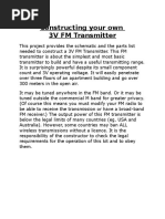 (FM) that can be received on any standard FM band receiver. The audio input is