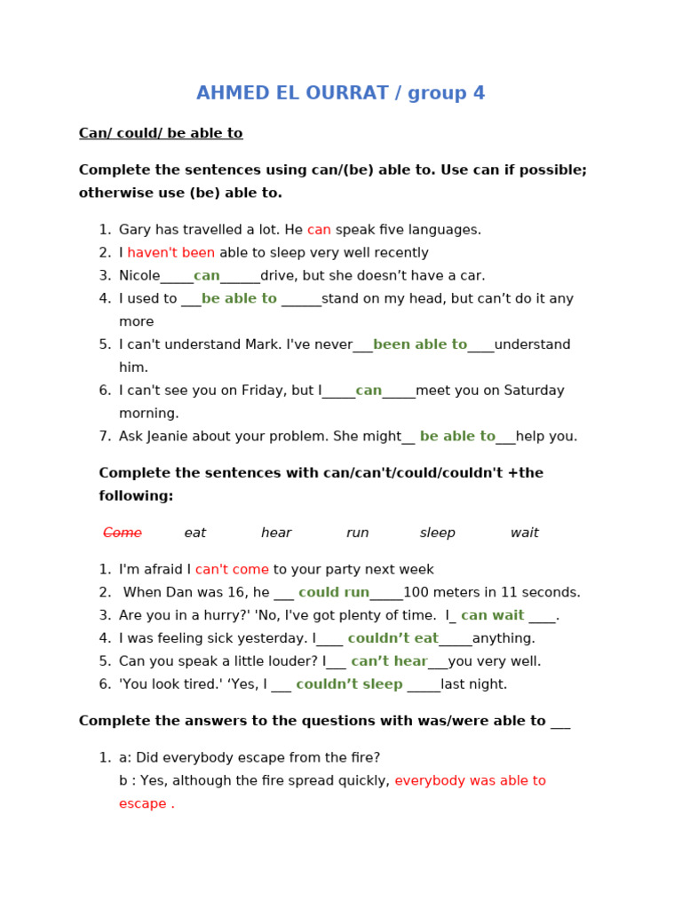 4. I used to ___be able to ______stand on my head, but can’t do it any