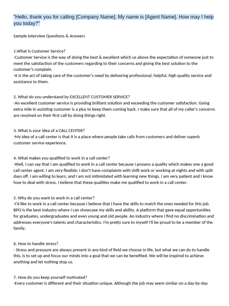 how to deal with stress. I believe that these qualities make me qualified to work in a call center.