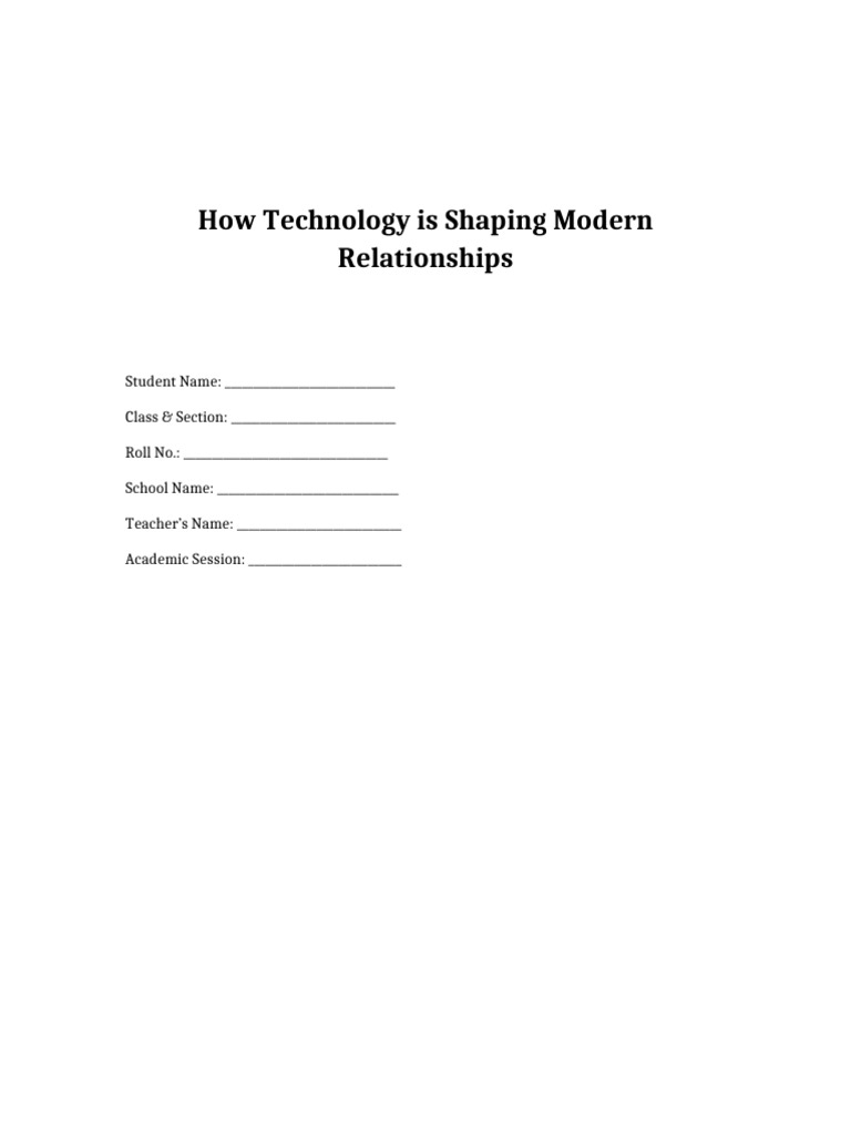 Technology is Shaping Modern Relationships” during the academic session __________. This