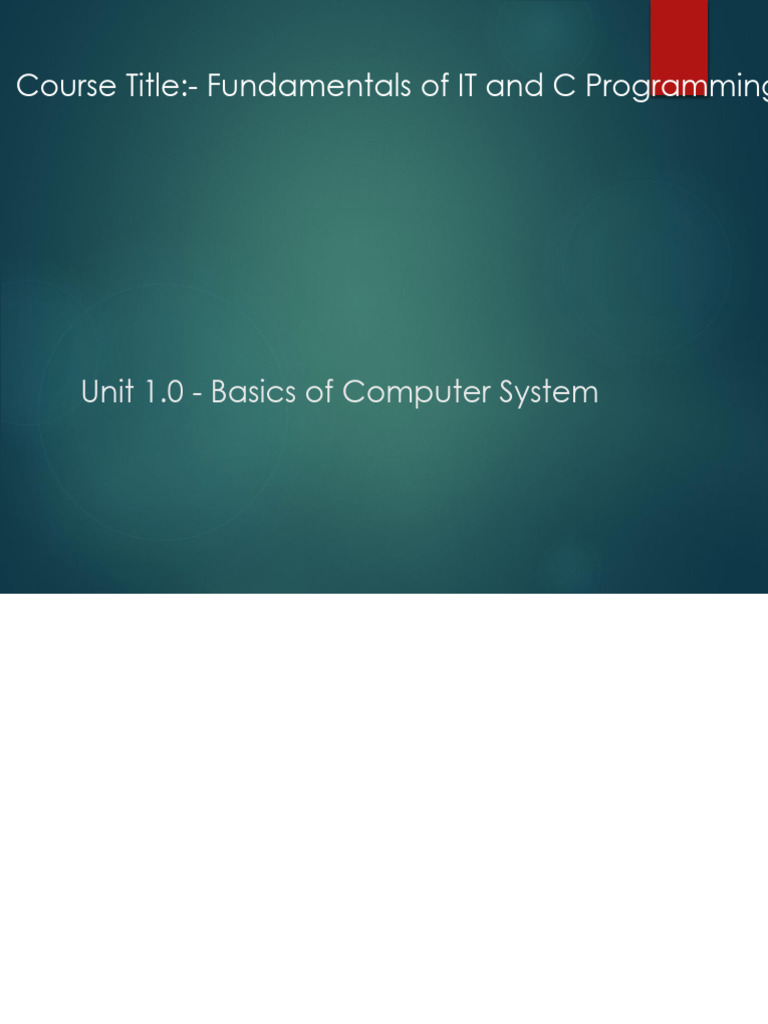 Course Title:- Fundamentals of IT and C Programming