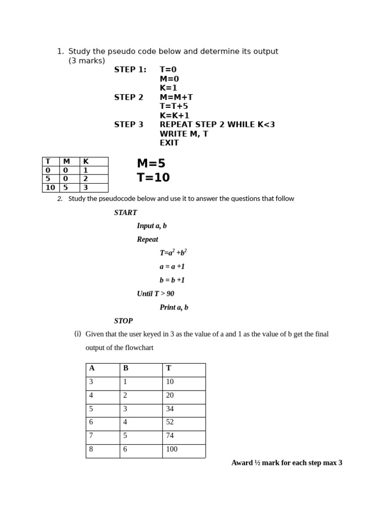 (i) Given that the user keyed in 3 as the value of a and 1 as the value of b get the final