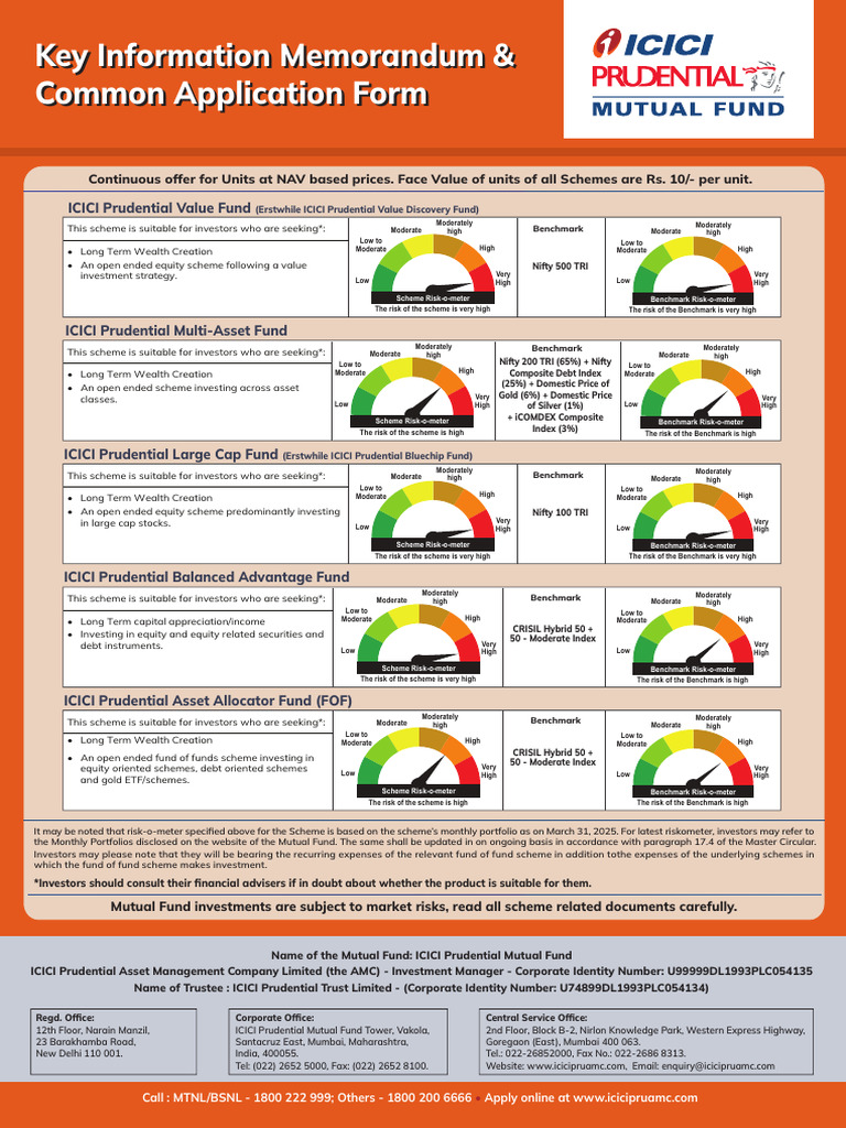 Schemes/Mutual Fund, due diligence certificate by AMC, Key Personnel, Investors’ rights & services, risk factors, penalties & pending litigations etc.