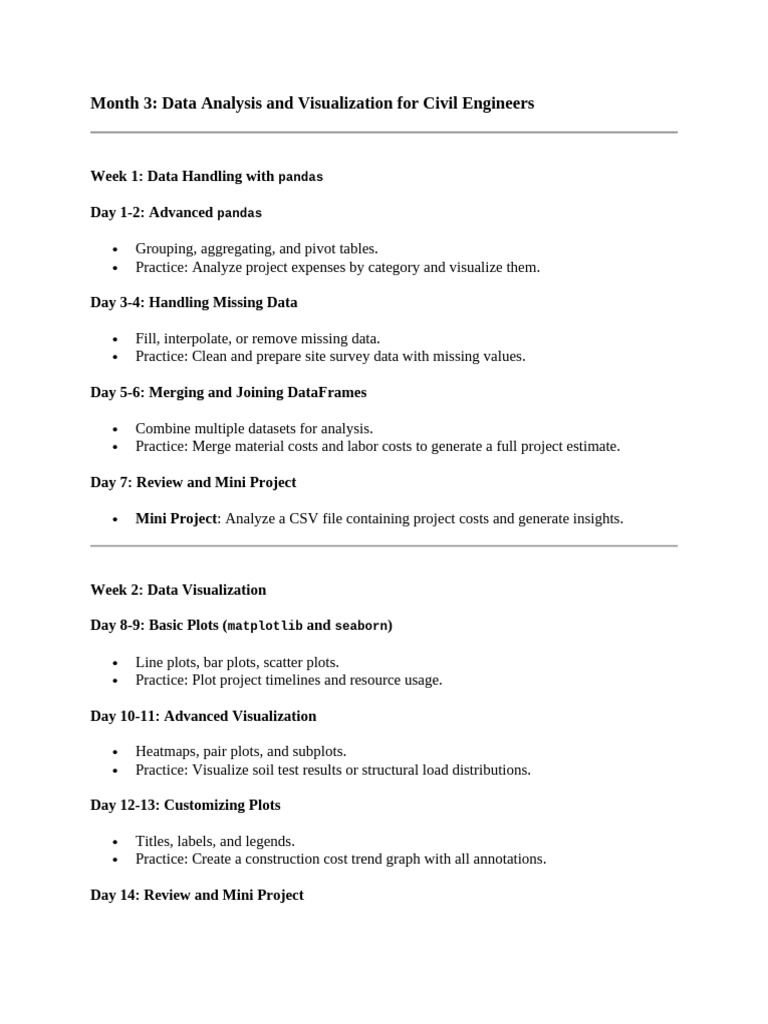 Month 3: Data Analysis and Visualization for Civil Engineers