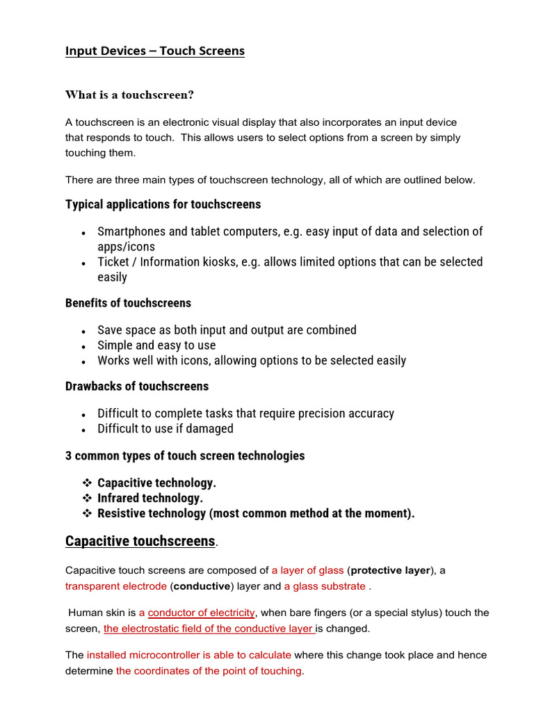 Capacitive touch screens are composed of a layer of glass (protective layer), a