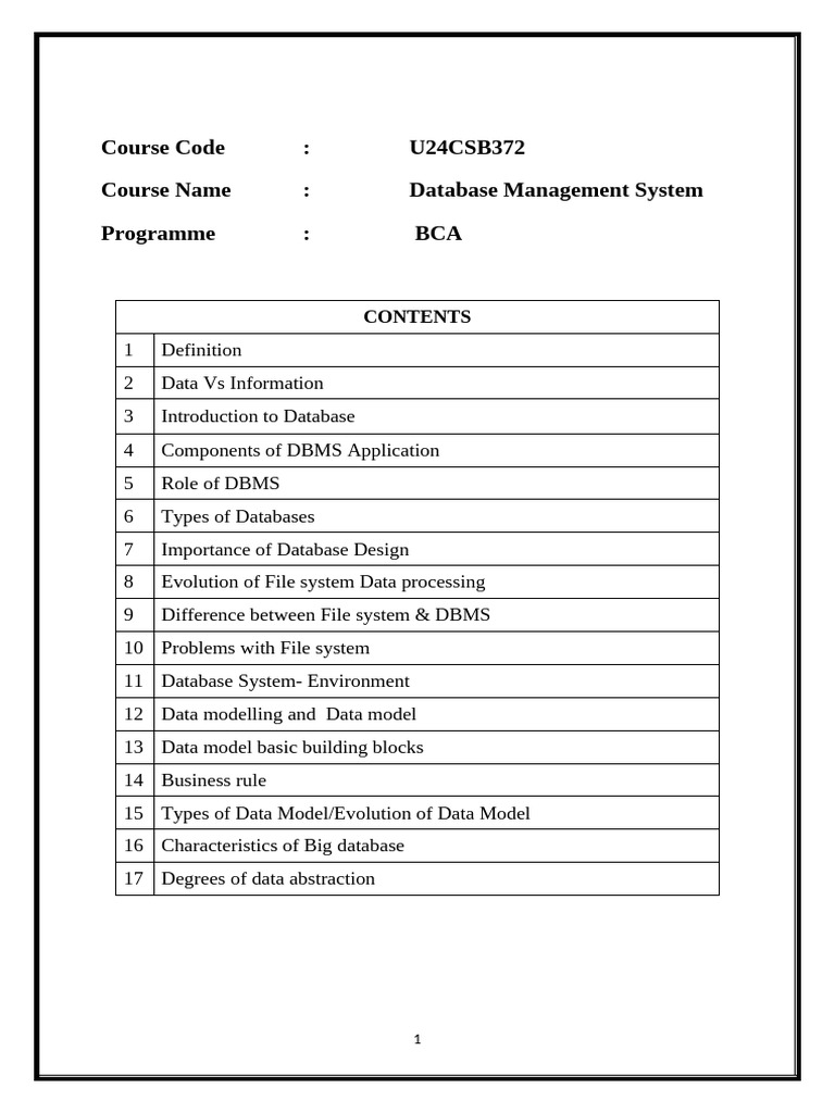 Unit I DBMS Notes
