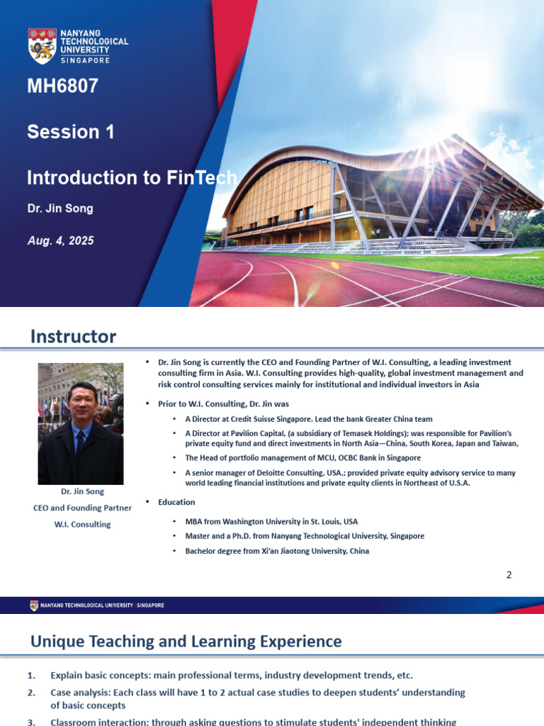 MH6807 Session 1 Introduction To FinTech