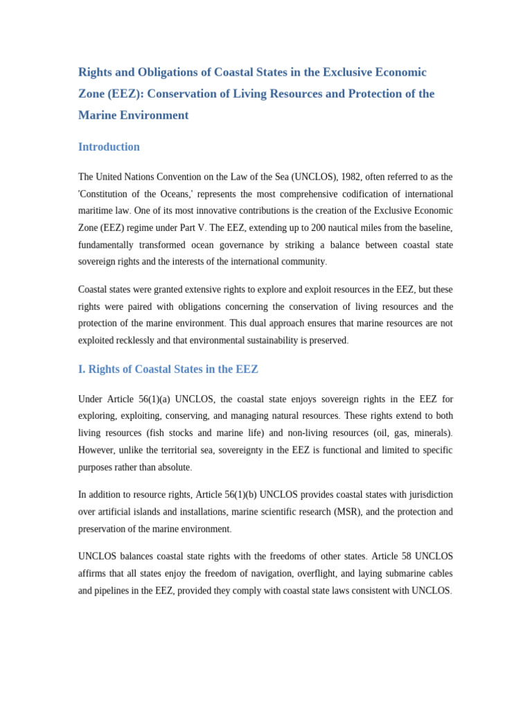 Rights and Obligations of Coastal States in the Exclusive Economic