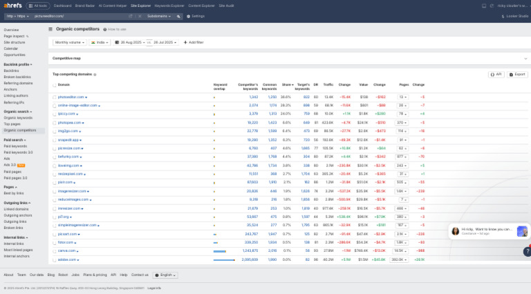 Referring domains Domain Keyword Competitor's Common Share Target's DR Traffic Change Value Change Pages Change