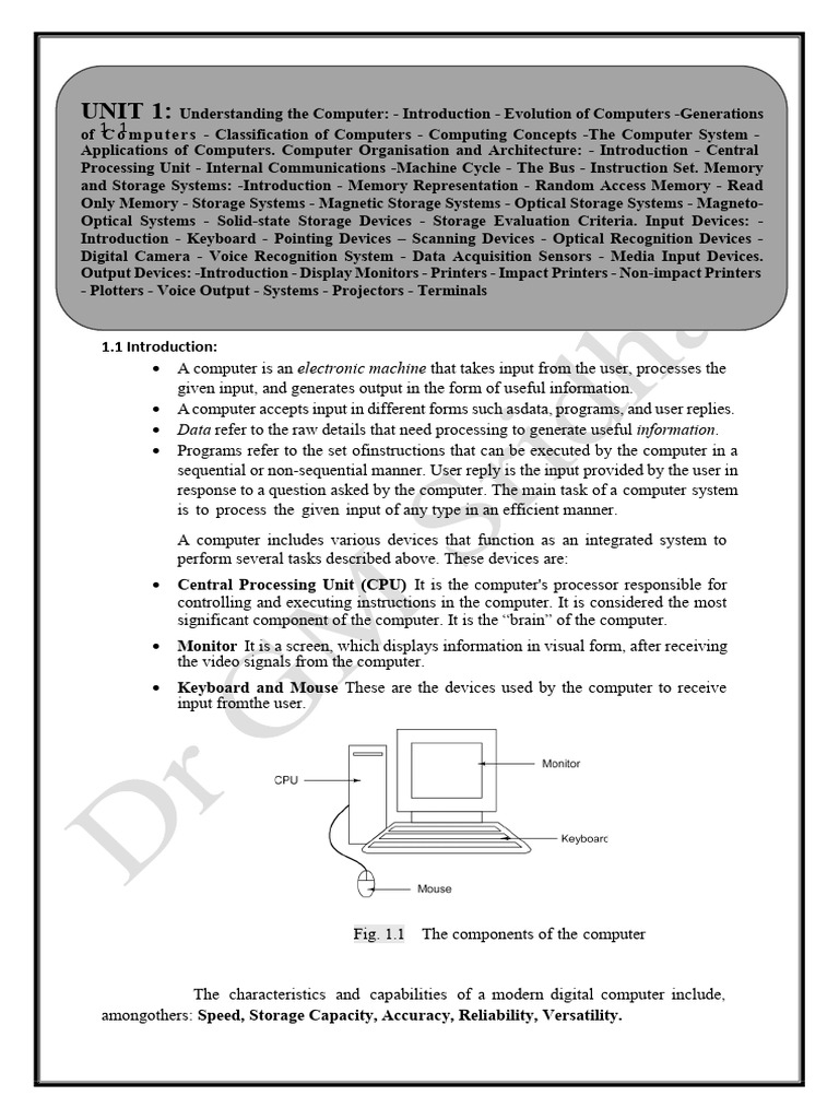 of C o m pu te r s - Classification of Computers - Computing Concepts -The Computer System -