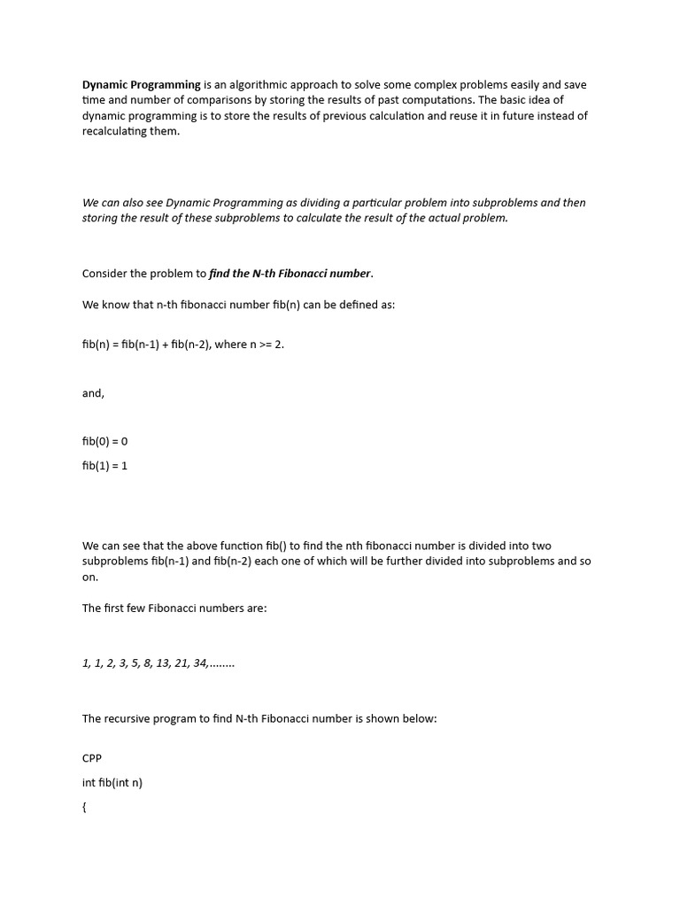 solved using Dynamic Programming algorithm. Let us extend our previous example of Fibonacci