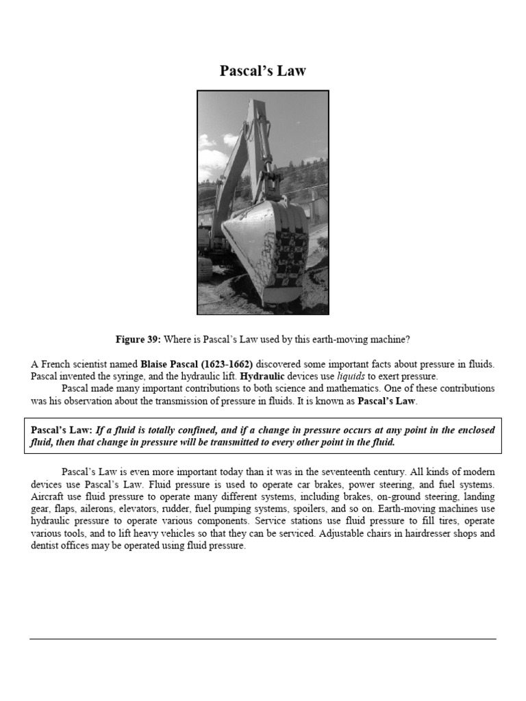 devices use Pascal’s Law. Fluid pressure is used to operate car brakes, power steering, and fuel systems.