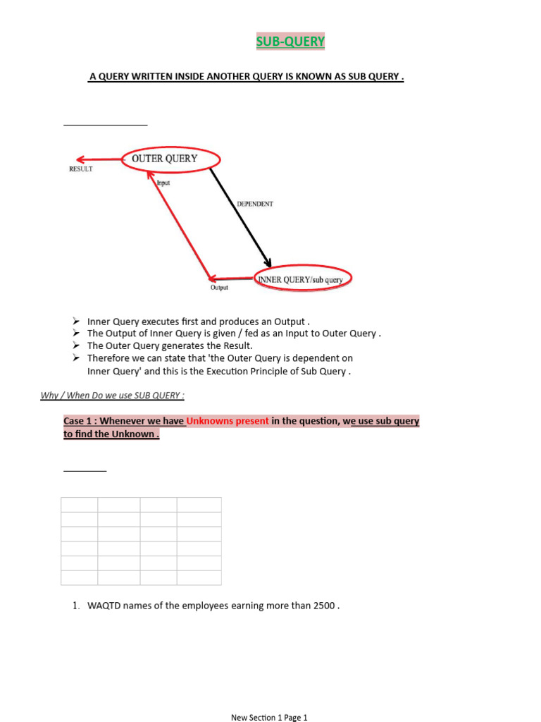 Case 1 : Whenever we have Unknowns present in the question, we use sub query