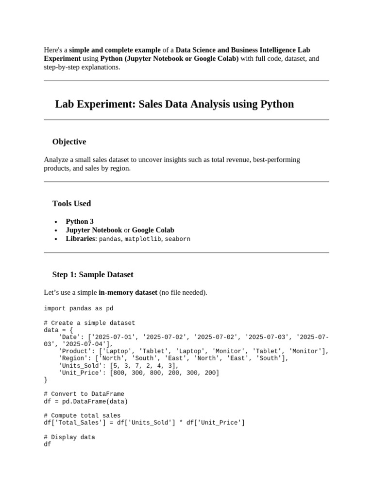 🧪 Lab Experiment: Sales Data Analysis using Python