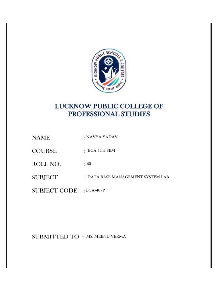 GIVEN BELOW. STUDENT (COLLEGE ROLL NUMBER, NAME