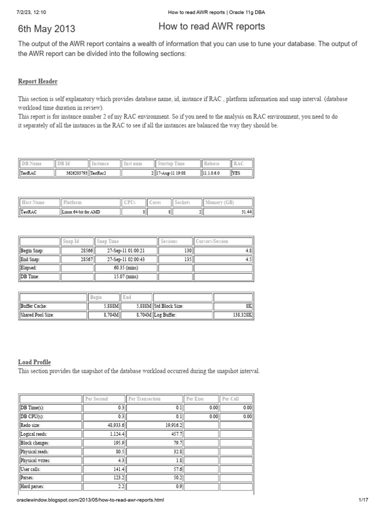 7/2/23, 12:10 How to read AWR reports | Oracle 11g DBA