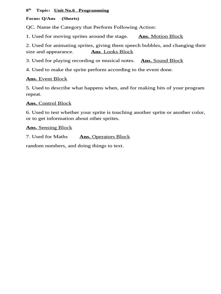 1. Used for moving sprites around the stage. Ans. Motion Block