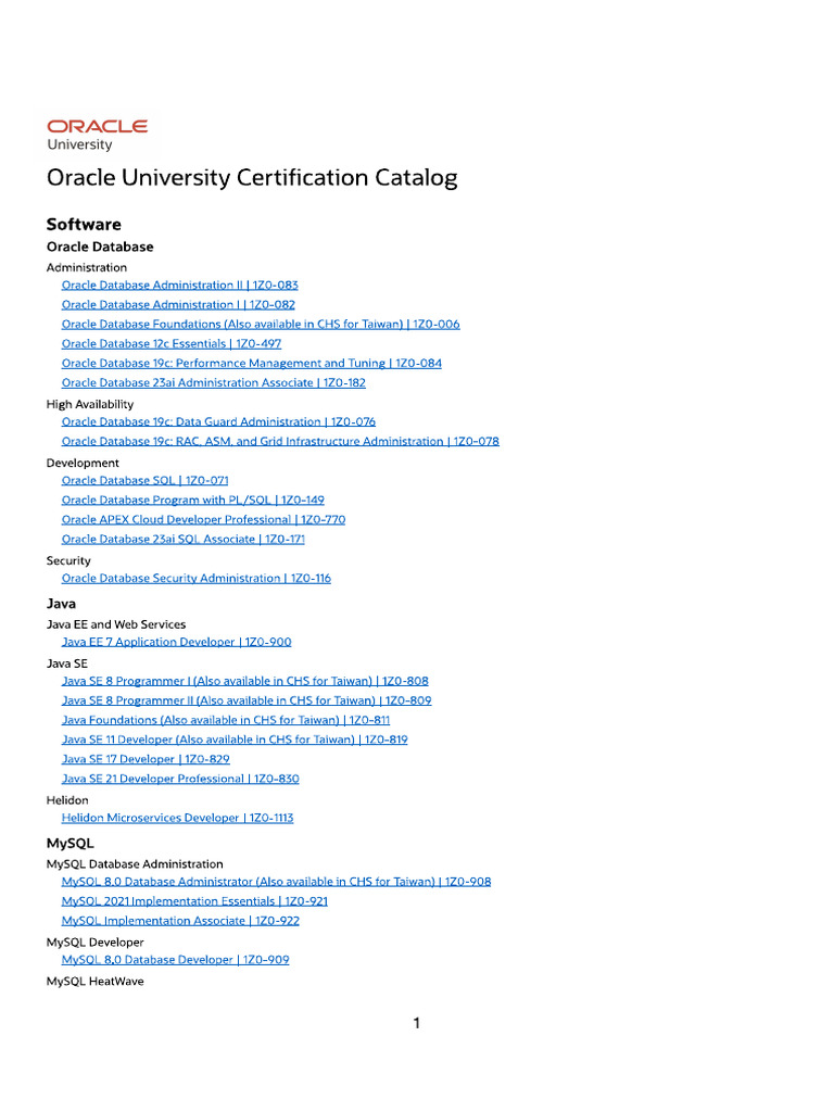 0 ratings0% found this document useful (0 votes) 8 views8 pagesOracle Certifications Catalogie