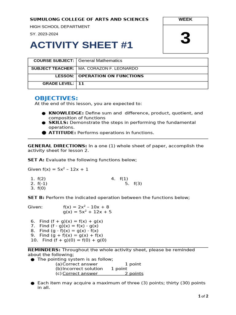REMINDERS: Throughout the whole activity sheet, please be reminded