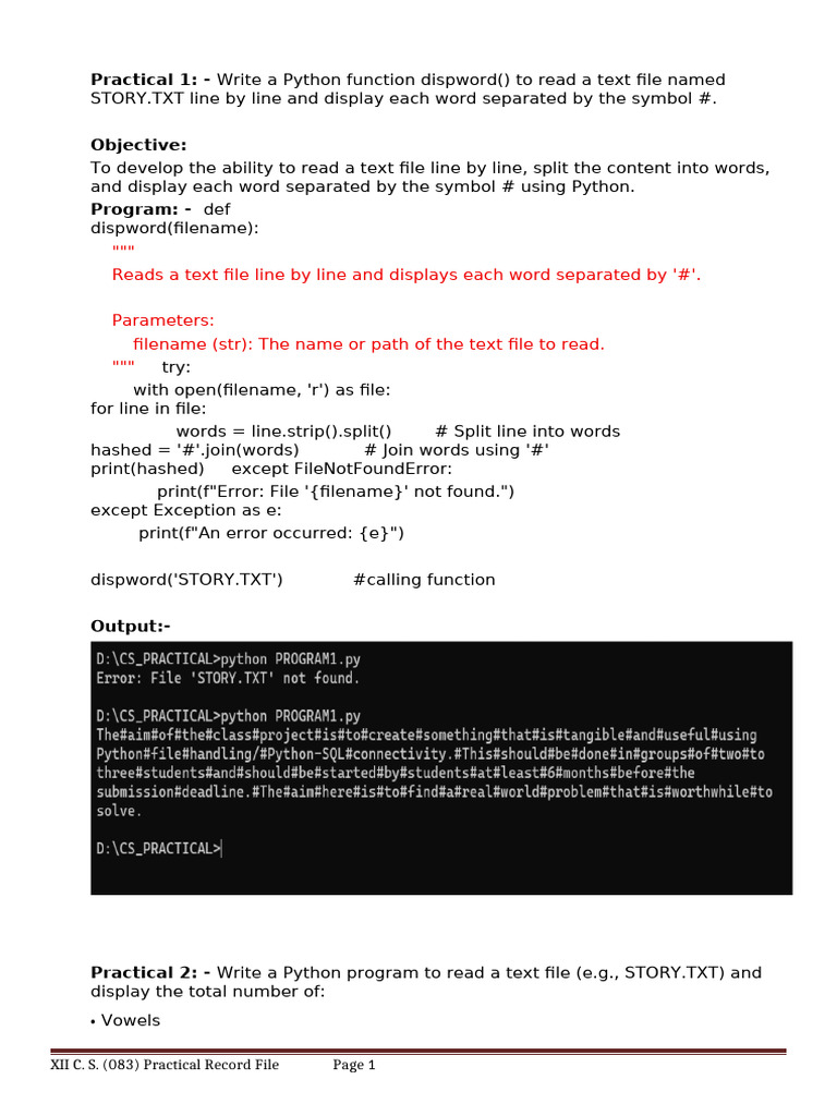 Practical 2: - Write a Python program to read a text file (e.g., STORY.TXT) and