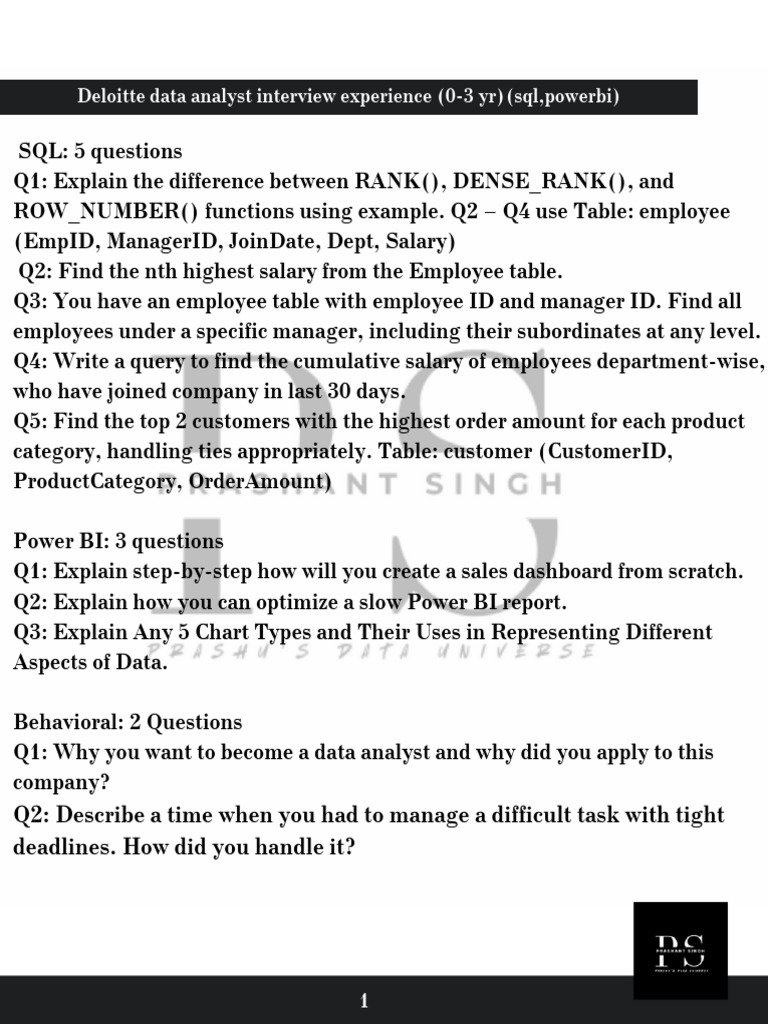 Deloitte data analyst interview experience (0-3 yr)(sql,powerbi)