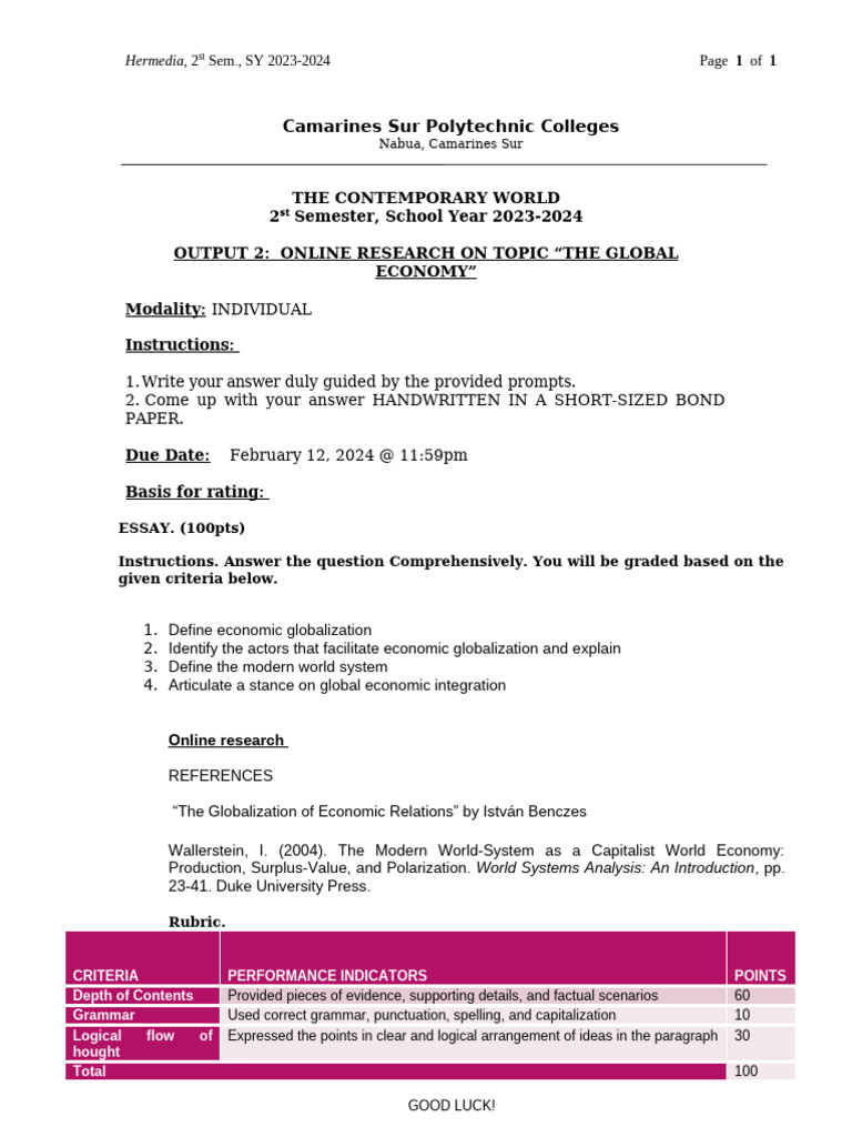OUTPUT 2: ONLINE RESEARCH ON TOPIC “THE GLOBAL