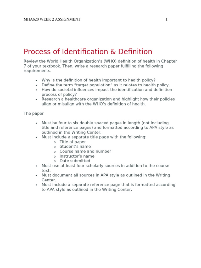 MHA620 Week 2 Assignment - Edited