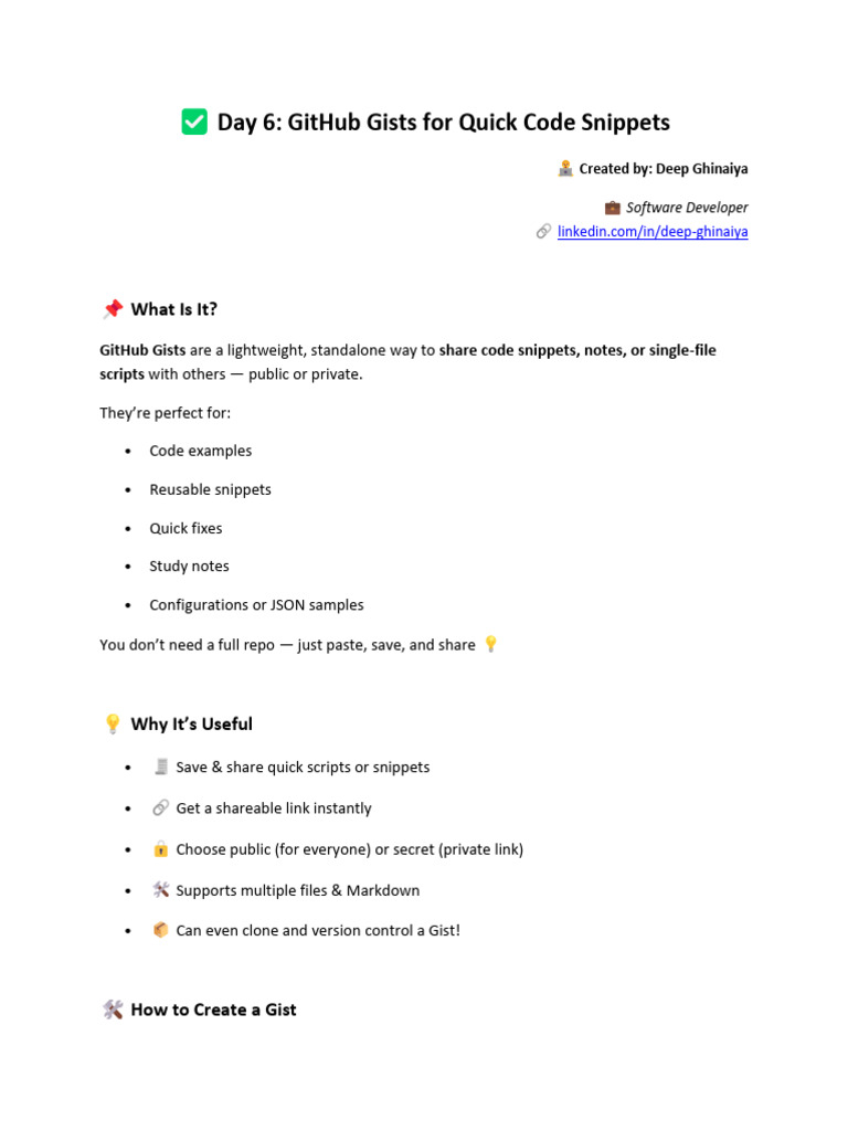 Day 6: GitHub Gists for Quick Code Snippets
