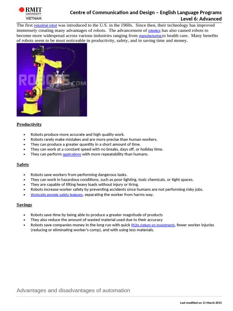 robotics, computer systems, and related technologies. As automation has increased, there has developed a