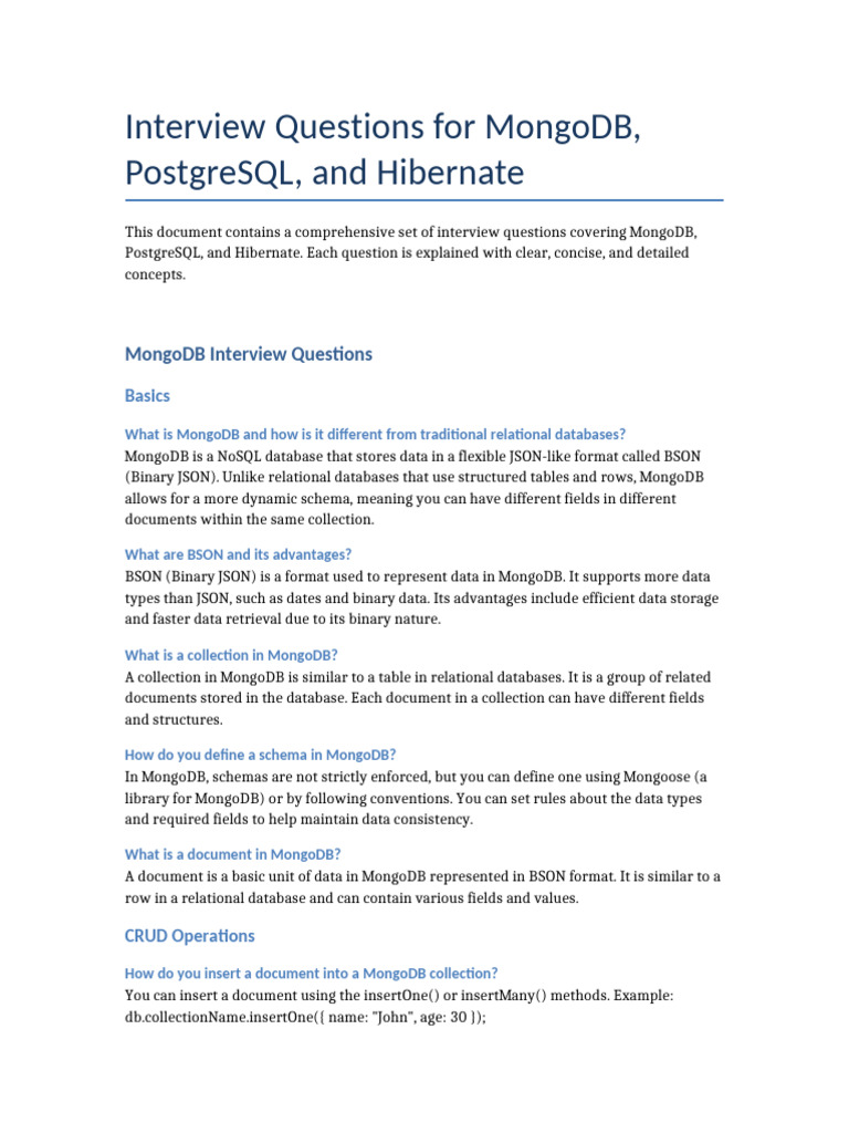 This document contains a comprehensive set of interview questions covering MongoDB,