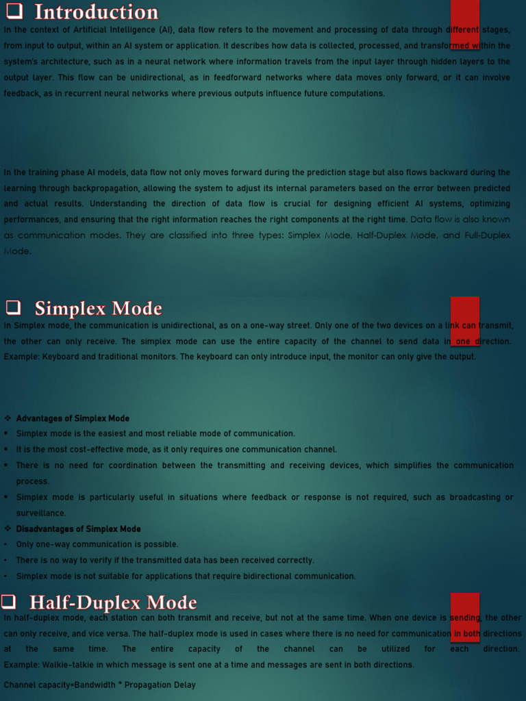 ▪ Simplex mode is particularly useful in situations where feedback or response is not required, such as broadcasting or