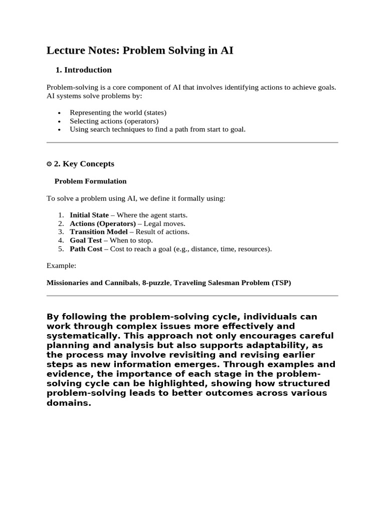 Problem-solving is a core component of AI that involves identifying actions to achieve goals.