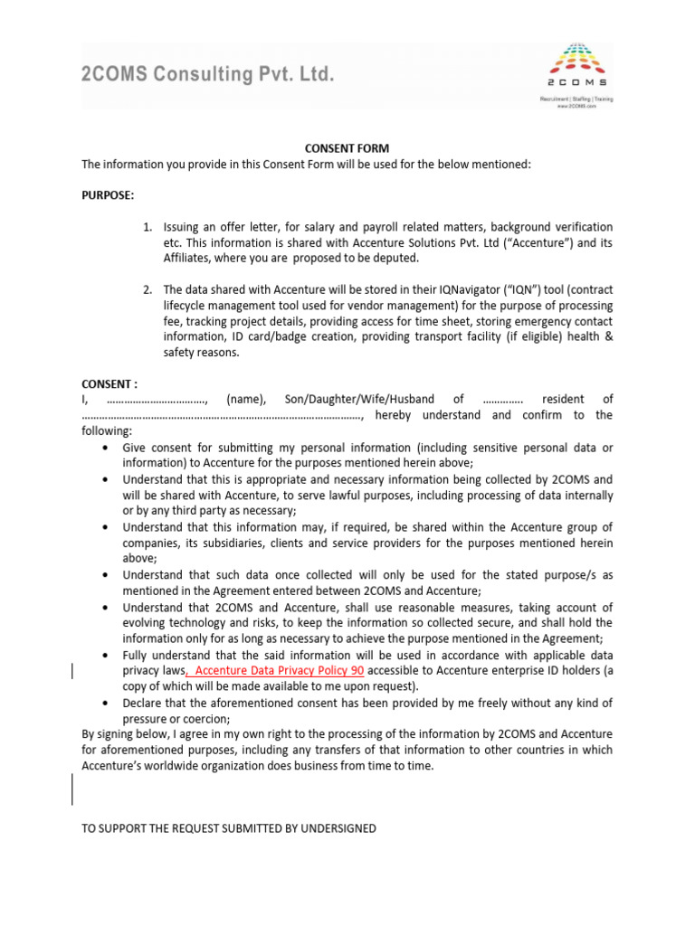 etc. This information is shared with Accenture Solutions Pvt. Ltd (“Accenture”) and its