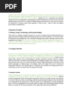 Logistics is the management of supply and transportation to deliver the goods on time and