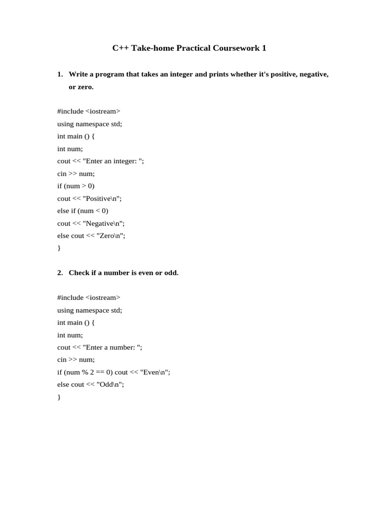 1. Write a program that takes an integer and prints whether it's positive, negative,