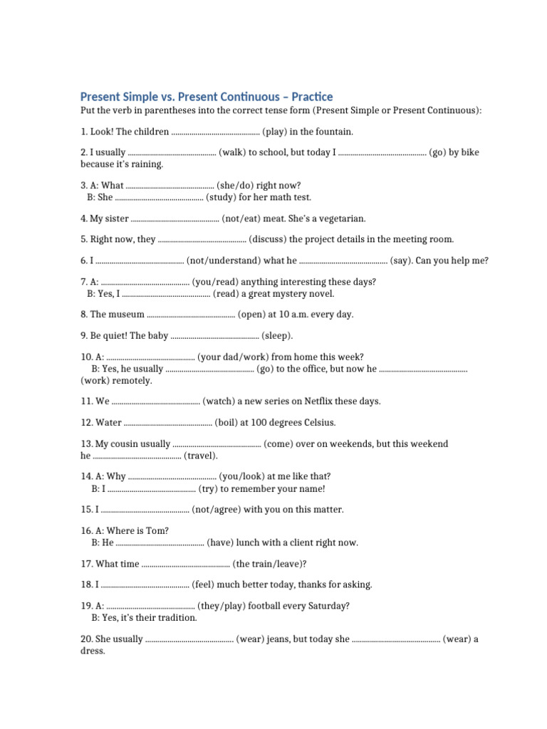 20. She usually ............................................ (wear) jeans, but today she ............................................ (wear) a