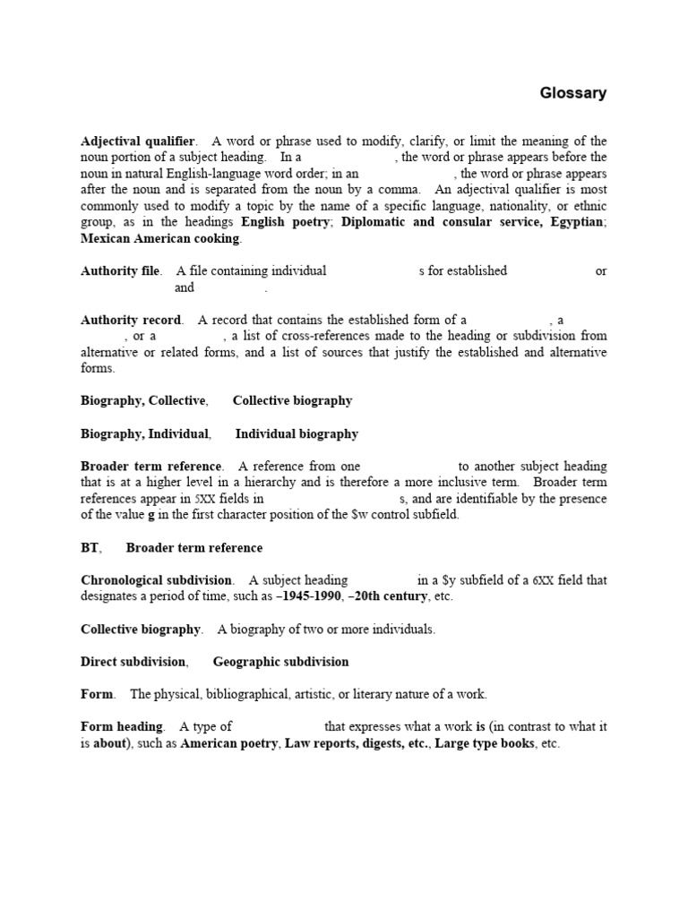 subdivisions. As used in this manual, the term refers specifically to the subject authority file