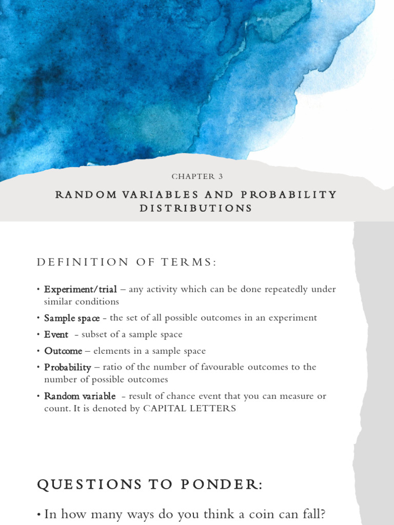 R A N D O M VA R I A B L E S A N D P RO B A B I L I T Y